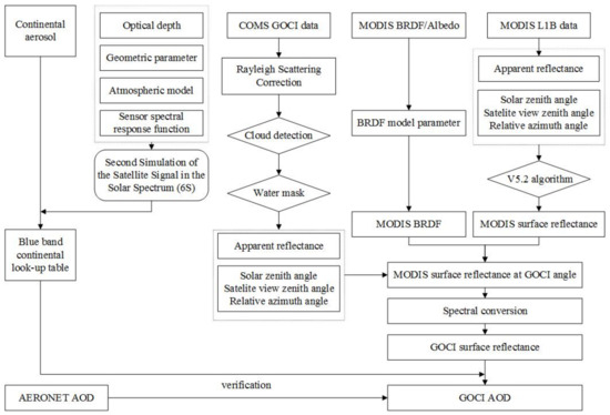 Flow chart of the AOD retrieval algorithm from GOCI data.
