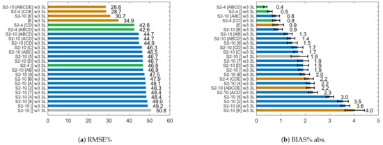 | Forest Variable | RMSE% | BIAS% abs. | RMSE% | BIAS% abs. | ||