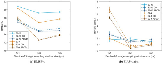 - w* = w1, w3 or w5: window size of the used Sentinel-2 image sampling scheme (1 × 1, 3 × 3 or 5 × 5 pixels, respectively);