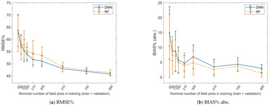 | Effect of the amount of training data /Nominal number of field plots, training + validation sets combined | 60, 90, 120, 150, 210, 367 300, 510, 750, and 990 | Section 4.4 |