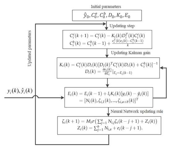 where indicates the EKF updating parameters for the sampling instant and the element of the neural network adaptive structure algorithm. To calculate each updated parameter for the sample, can be reformulated as