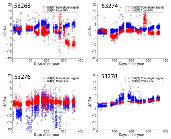 4.1. δt/t Derived Directly from Corrected Airgun Waveforms