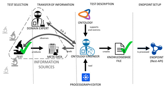 Digital workflow modified to allow ontology elicitation. Placing the ontology engineer (OE) at the center of the Test Description process only responds to the need to critically analyze and document the semantic transformation depicted in the Figure 6.