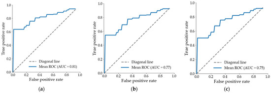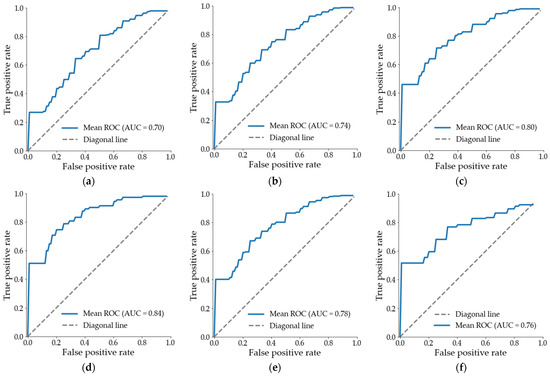 - Hanley, J.A.; McNeil, B.J. The meaning and use of the area under a receiver operating characteristic (ROC) curve. Radiology 1982, 143, 29–36. [Google Scholar] [CrossRef] [PubMed] [Green Version]