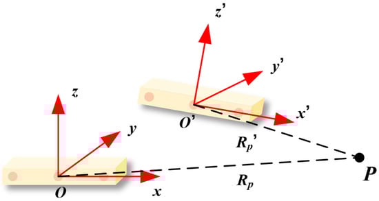 Figure 2 shows the geometric relationship of a radar instrument. is the reference radar coordinate system, where O is the radar center, x-axis represents the direction of the synthetic aperture. After repositioning, the radar coordinate system is transformed into due to its position change.