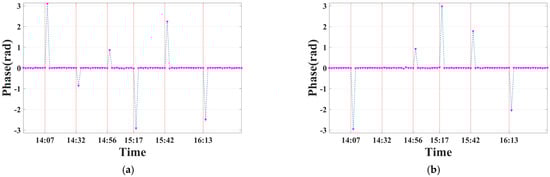 Interferometric phases of both corner reflectors (CRs): (a) CR1; (b) CR2.