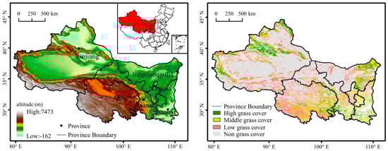Study area and grassland spatial distribution in Northwest China.