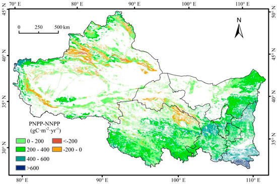 where, HNPP value > 0 suggests that the effect of human activities on the vegetation is positive; HNPP value < 0 indicates that the effect of human activities on the vegetation is negative.