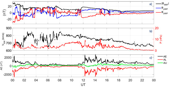 Finally, to investigate the high-latitude ionosphere response in terms of geomagnetic indices, we used AE (Auroral Electrojet), AU (Auroral Upper) and AL (Auroral Lower) indices at a 1-min resolution [51].