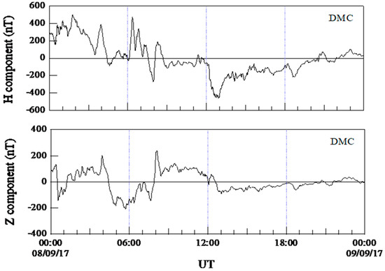 H and Z magnetic field components recorded at DMC magnetic station at Concordia on 8 September 2017.