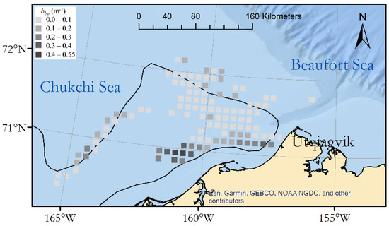 Backscattering is more commonly related to Particulate Organic Carbon (POC) [41], and a relationship has been developed specific to the Alaskan Arctic [42],