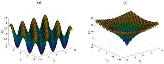 Model image of different functions: (a) Griewank function and (b) Ackley function.