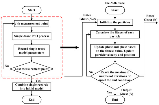 Flow chart showing the construction of an appropriate initial model using the single-trace PSO process.