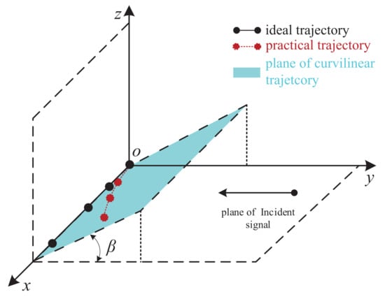 Figure 1 shows the curvilinear trajectory in 3-D view, the ideal trajectory is a strict straight line that is located on the x-axis, and the incident signals are assumed in the xoy plane.