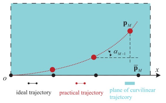 Noticing that the trajectory may be curvilinear due to various causes, and the curved trajectory may be not on the signal incident plane, and the angle between the curved plane and the xoy plane is . Figure 2 shows the curvilinear trajectory in the plane of curve, we assume that when the trajectory is curved, the scalar speed of movement is barely changed. In other word, the platform travel distance between two measurements are almost d, and the angle between the m-th and the -th measurement are .