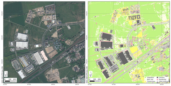 In all the VHR scenes used, one can identify different kinds of sealed areas, such as industrial areas or residential areas. Some potential confusion between residential areas and other sealed surfaces remains due to the spectral similarity of construction materials.