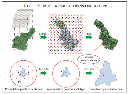 Schematic diagram of the complete fusing processes for constructing a new precipitation data point.