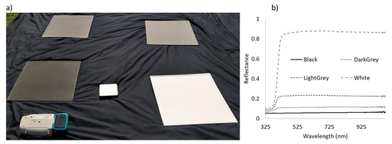 - Sanches, I.; Tuohy, M.; Hedley, M.; Bretherton, M. Large, durable and low-cost reflectance standard for field remote sensing applications. Int. J. Remote Sens. 2009, 30, 2309–2319. [Google Scholar] [CrossRef]