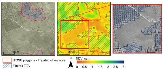 Historical PNOA orthophotography (dates between 1998–2003) and the imagery spectral bands supported phenological interpretation during the analysis. Furthermore, the National Forest Inventory (NFI) (version 2 (1986–1995) and version 3 (1997–2007)) provided robust information about forest species composition in the inventory plot locations over time [97]. SIOSE datasets provide particularly valuable and useful cartographic information for the Spanish territory; however, the complexity of the territory and land cover dynamics makes it necessary to have an appropriate set of filtering measures to avoid inconsistencies in the TTA. Some of the sources of the identified inconsistencies were: