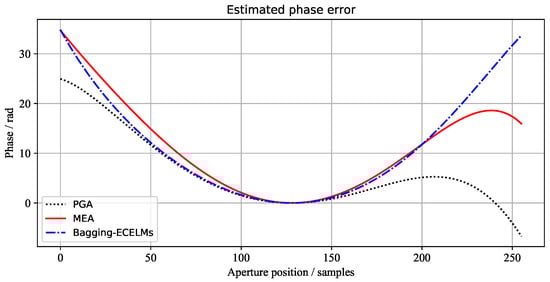 However, our proposed Bagging-ECELMs method has the following three disadvantages. Firstly, this model can only be utilized for phase errors that can be modeled as a polynomial. Secondly, a high number of samples is needed for training. Finally, the focusing quality is slightly worse than that based on minimum entropy. Bagging-ECELMs can replace PGA when is used to correct polynomial-type phase errors. When a higher image focusing quality is required and the type of phase error is unknown, the MEA method should be used. The prediction results of Bagging-ECELMs can also be used as the initial values of MEA, to accelerate the convergence speed of MEA. In summary, Bagging-ECELMs is more suitable for real-time autofocus applications, while MEA is more suited to high-quality autofocus applications. Different from MEA and PGA, Bagging-ECELMs is nonparametric at the testing phase and easier to use.