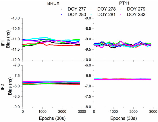 Analysis of two IFB parameters time series for Galileo UC model at BRUX and PT11 stations.