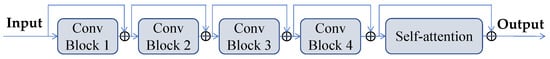 where denotes the residual self-attention features, means self-attention features, and stands for original features extracted with skip connection. Therefore, the overall framework of our feature encoder is depicted in Figure 4.