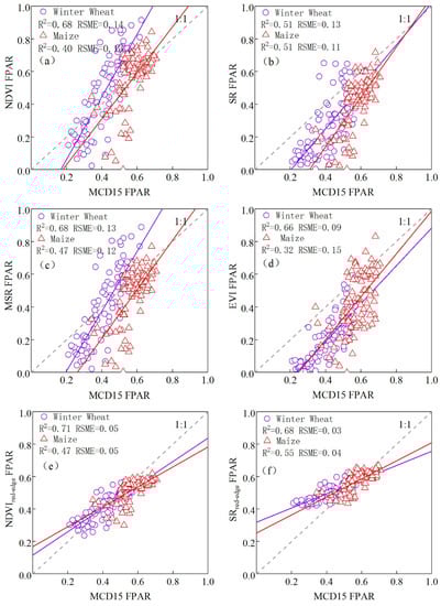 3.1. Modeling of FPAR Based on Red-Edge Vegetation Indices
