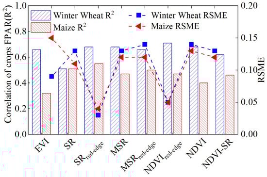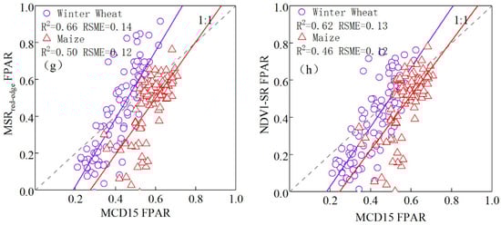 | FPAR | Photosynthetically active radiation absorption proportion | FPARwheat = 0.8287 × NDVIred-edge + 0.1889 FPARmaize = 0.1023 × SRred-edge + 0.3011 |