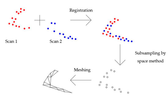 Modern numerical methods require the input of a geometric model into the computational environment. Sources point out the widespread use of point cloud to represent the geometry of chambers in mines [27] and laboratory testing of beam deformation [28]. A similar workflow to that proposed by the authors is observed. The individual scans are combined, the number of points is reduced and the meshing process and visual inspection follow.