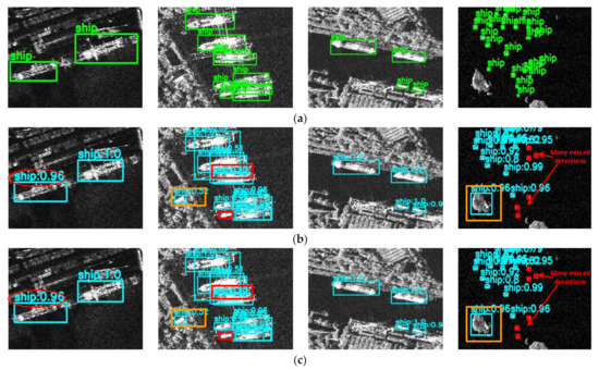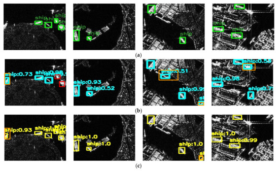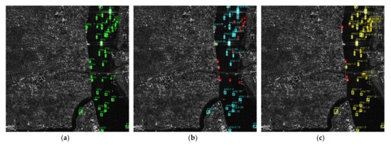 - HRSID: HRSID was released by Wei et al. [8] in 2020. There are 5604 images with 800 × 800 image size in HRSID from Sentinel-1 and TerraSAR-X. SAR ships in HRSID are provided with resolutions from 0.1 m to 3 m, and HH, HV, and VV polarizations. Same as its original reports in [8], the ratio of the training set and the test set is 13:7 according to its default configuration files.