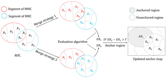 In the ROC that has sufficient optimization potential, intersection regions are released from the segments of MMC, and the remaining segment is anchored in the anchor map. In the next iteration, the released intersection regions can be freely merged with adjacent unanchored regions. Since one segment of MMC may have ROCs with multiple segments of RMC, we adopted the following anchor strategy: