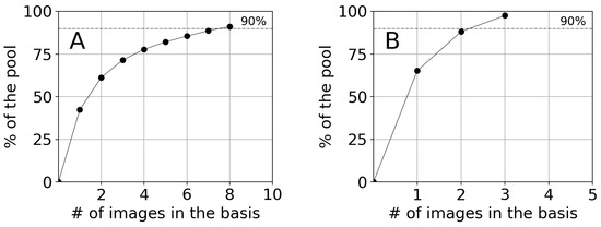 Figure 7 shows, for BCN1 and BCN2, the evolution of the percentage of pool images with (or more) cells having pairs with the basis images as new images are incorporated to it (recall Section 2.5.1). From Figure 7, the basis has eight images for BCN1 and only three for BCN2 (Figure 4B–D). In both cases the basis images are spread over time, covering different years, months and day hours. Further, they include a variety of weather conditions.