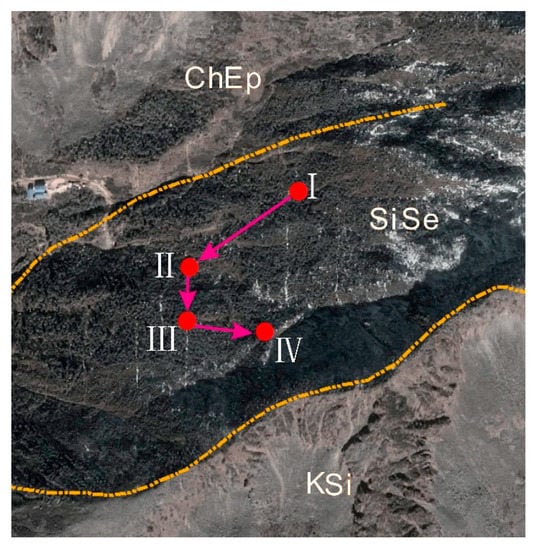 To verify the presence of the fault, a special field survey was conducted in October 2018. The fault trace was found at point I and the outcrop of the fault fracture zone at point II (Figure 7). Field investigation and analysis confirmed the presence of a NE-trending normal fault passing through this region.