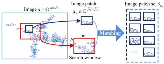 Next, all the patches in are stacked into a matrix of size , represented by , which contains every patch in as its columns, as shown in Figure 2. The matrix , including all patches with similar structures, is named an IPG. For simplicity, we define the construction of the IPG as follows: