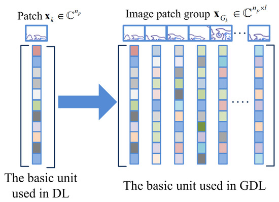 In this subsection, we show how to learn the group dictionary for each IPG . Note that, on one hand, we hope that each can be represented by the corresponding faithfully. On the other hand, we hope that the sparse representation coefficient of over the is as sparse as possible. According to the patch-based DL method presented in Section 3, the GDL can be intuitively modeled as follows: