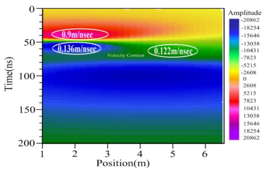 12]. In addition, for the GPR survey, each material is distinguished from others based on velocity changes in the subsurface.