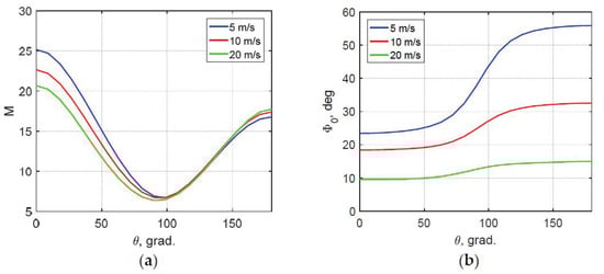 (a) Magnitudes and (b) phase of the wave breaking MTF as a function of the angle between directions of the wind and long-wave, . Legends show wind velocities.