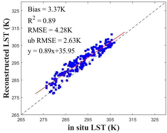 Scatter plot of the reconstructed LST versus in situ measurements.