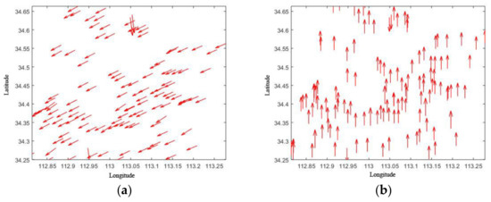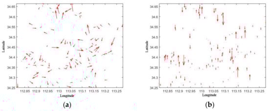 Through matching, 121 pairs, 143 pairs, and 168 pairs of the corresponding image points were obtained for Jincheng, Tianjin, and Shiyan, respectively. The ground coordinate differences for the corresponding image points were calculated and are summarized in Table 8. When compared with the RMS errors in Table 2, Table 5, and Table 8, the positioning consistency of the corresponding points improved in all three directions.