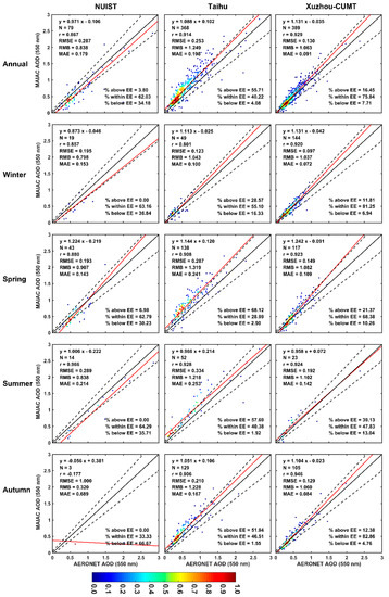 3.1. Evaluations of MAIAC AOD against AERONET AOD