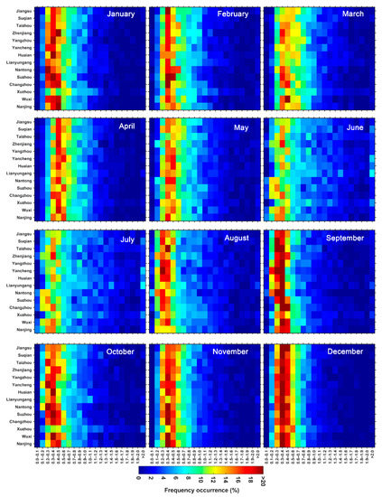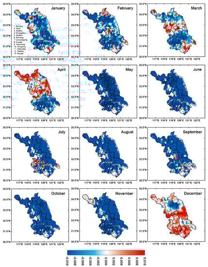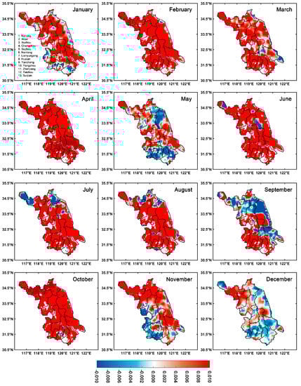 | Yangzhou | 0.25 | 0.46 | 0.6 | 0.63 | 0.57 | −0.15 | 0.48 | 0.23 | 0.11 | 0.25 | 0.26 | 0.3 |