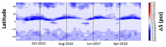 - Supply, A.; Boutin, J.; Reverdin, G.; Vergely, J.-L.; Bellenger, H. Variability of Satellite Sea Surface Salinity under Rainfall. In Satellite Precipitation Measurement. Advances in Global Change Research; Levizzani, V., Kidd, C., Kirschbaum, D., Kummerow, C., Nakamura, K., Turk, F., Eds.; Springer: Cham, Switzerland, 2020; Volume 69. [Google Scholar] [CrossRef]
