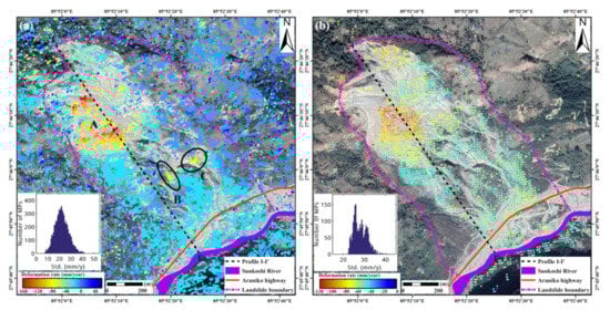 - Li, M.; Zhang, L.; Shi, X.; Liao, M.; Yang, M. Monitoring active motion of the Guobu landslide near the Laxiwa Hydropower Station in China by time-series point-like targets offset tracking. Remote Sens. Environ. 2019, 221, 80–93. [Google Scholar] [CrossRef]