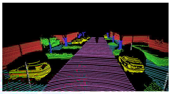 - Behley, J.; Garbade, M.; Milioto, A.; Quenzel, J.; Behnke, S.; Stachniss, C.; Gall, J. SemanticKITTI: A dataset for semantic scene understanding of LiDAR sequences. In Proceedings of the 2019 IEEE/CVF International Conference on Computer Vision (ICCV), Seoul, Korea, 27 October–2 November 2019; pp. 9296–9306. [Google Scholar]