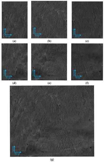 3. Resolution reduction. The resolution of ScanSAR images is not as good as that of stripmap SAR or spotlight SAR because ScanSAR can obtain a wide-range swath at the expense of the azimuth resolution []. It will worsen by either multilooking or downsampling. In that case, many details and edges will be lost, and the image quality will be affected.