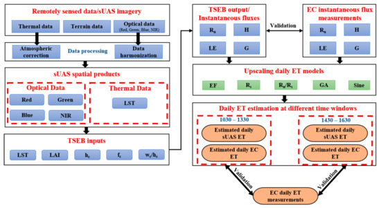 Study methodology for assessing different upscaling daily ET methods in sUAS.