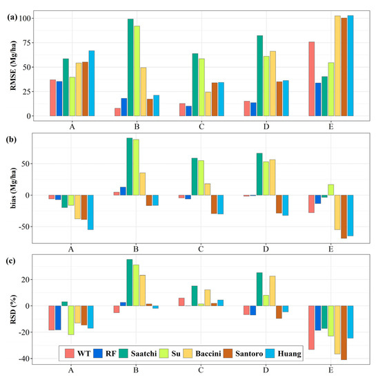 - McRoberts, R.E.; Næsset, E.; Saatchi, S.S.; Liknes, G.C.; Walters, B.F.; Chen, Q. Local validation of global biomass maps. Int. J. Appl. Earth Obs. Geoinf. 2019, 83, 101931. [Google Scholar] [CrossRef]