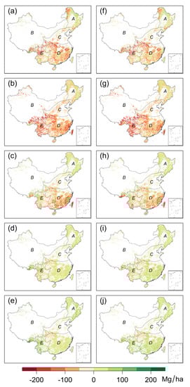 - Guo, Z.; Hu, H.; Li, P.; Li, N.; Fang, J. Spatio-temporal changes in biomass carbon sinks in China’s forests from 1977 to 2008. Sci. China Life Sci. 2013, 56, 661–671. [Google Scholar] [CrossRef] [Green Version]