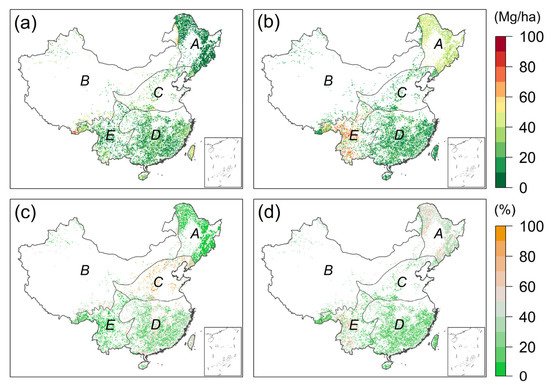 - Zhou, X.; Lei, X.; Liu, C.; Huang, H.; Zhou, C.; Peng, C. Re-estimating the changes and ranges of forest biomass carbon in China during the past 40 years. For. Ecosyst. 2019, 6, 51. [Google Scholar] [CrossRef] [Green Version]