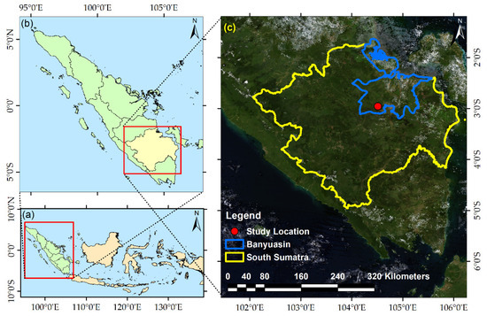 Map of (a) Indonesia, (b) Sumatra, and (c) location of study area.